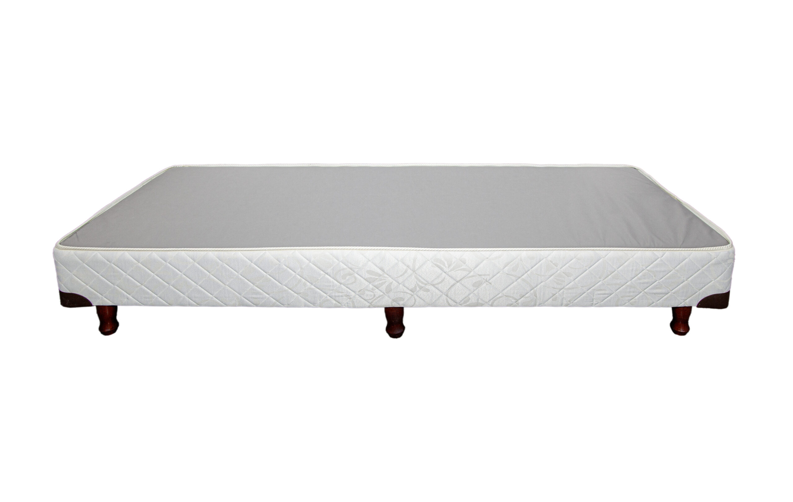 Base resistente y duradera, diseñada para brindar estabilidad y acompañar cualquier tipo de colchón. Cuenta con estructura de madera reforzada, superficie con espuma y tela antideslizante que evita desplazamientos, y tapizado en Jacquard premium de excelente terminación.