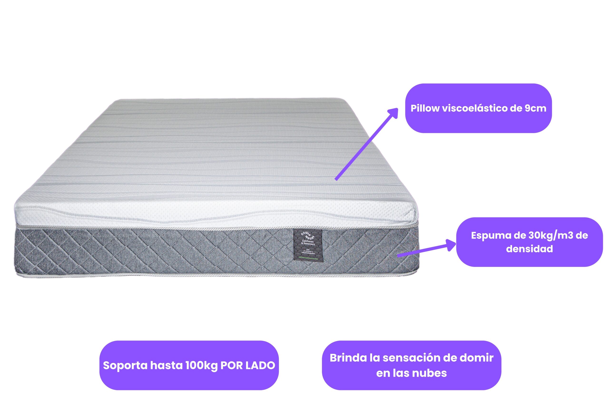 Colchón diseñado para ofrecer un descanso superior, combinando una base firme de espuma de alta densidad con una superficie viscoelástica suave y adaptable. Su placa de espuma de 30 kg/m³ brinda el soporte necesario para mantener una correcta postura corporal, mientras que la manta viscoelástica Memory se adapta al cuerpo, disipa los puntos de presión y mejora el confort.